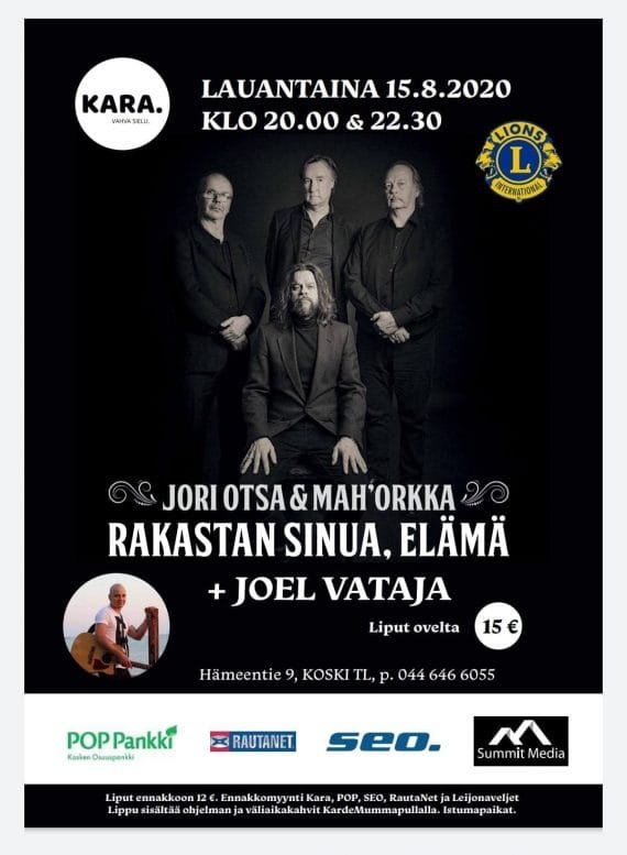 ”Jori Otsa & Mah’ Orkka viimeinkin odotetulla julkisella keikalla! Ja paikkana mikäpä muu, kuin legendaarinen Juttutupa. Paikkoja tosin on rajoitetusti. Ensimmäiset 90 henk. otetaan sisään salin puolelle, mutta keskihuoneesta ja terassin puolelta on mahdollisuus kuulla keikkaa tietyin kuuluvuus ja näkörajoittein. Sisäänpääsy on ilmainen. Tervetuloa kuuntelemaan unohtumattomimpia Georg Otsin levylauluja heinäkuisessa[…]